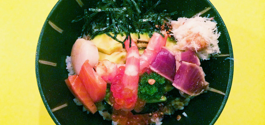 Prix : 16€ le chirashi, 22€ le menu (salade + chirashi + jus frais)
