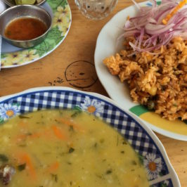 Le repas populaire au Pérou propose toujours divers féculents, recouverts de légumes sautés et d’une viande en générale frite. Trop riche ? Peut-être. Mais absolument parfait pour travailleurs et voyageurs ! La rencontre avec cette mamie cordon bleu du marché en est une belle : j’y suis retournée ensuite tous les jours. C’est cela, la magie des marchés à la péruvienne : se sentir proche et presque en famille lorsqu’on s’y remplit le ventre de bons petits plats aux goûts pourtant bien éloignés de ceux de nos terres natales !