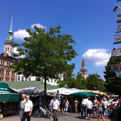 Pour revenir aux bretzels : Tout le monde connaît les bretzels (soit dit en passant, vous ne pourrez plus ignorer que les bretzel allemands sont bien plus moelleux que tous ceux qu’on trouve ailleurs une fois que vous en aurez goûté dans ce pays). Mais vous ne connaîtrez pas nécessairement l’Obatzda. Si son aspect n’est pas des plus ragoûtants, son goût est fort particulier. Fort, d’ailleurs, est le mot pour ce fromage. Pour acheter du fromage, vous pouvez-vous rendre au marché sur la grande place de Munich : les étals de fromagers ne manquent pas !