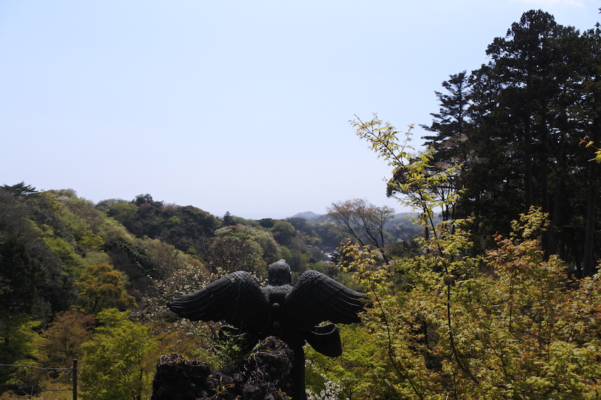 Mais à mon sens, ce qui rend encore plus intéressant le Kenchoji, est le chemin qui mène au sanctuaire Hansobo, au sommet d’une colline à l’arrière du temple. Comme de nombreux temples bouddhistes, le Kenchoji comporte un sanctuaire shinto dans son enceinte. Le Hansobo est introduit par des tengus, qui ont un rôle de gardien. A terme d’une courte ascension, on atteint la plateforme d’observation du sanctuaire qui permet d’admirer la forêt entourant Kamakura. C’est aussi un point de vue idéal à la saison des sakura !